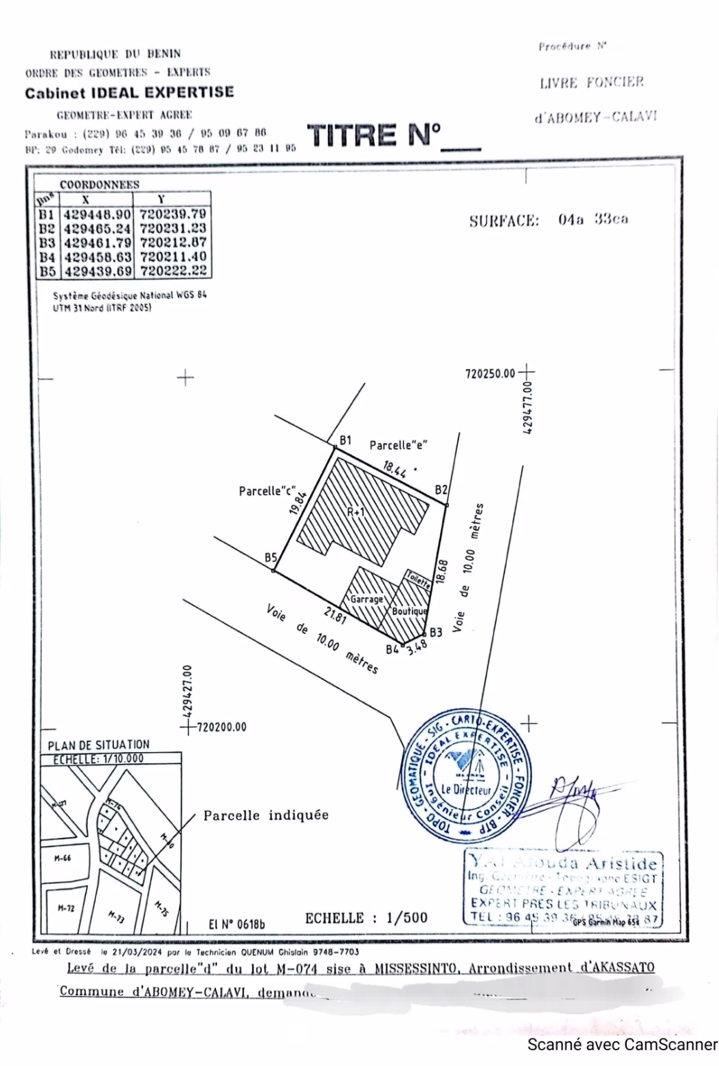 *Titre de propriété* : Titre foncier personnel (bornage contradictoire fait)