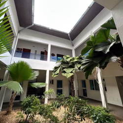 *Au 2e niveau :* Un grand hall + cuisine + 02 entrées couchées et douches – grand espace fête.